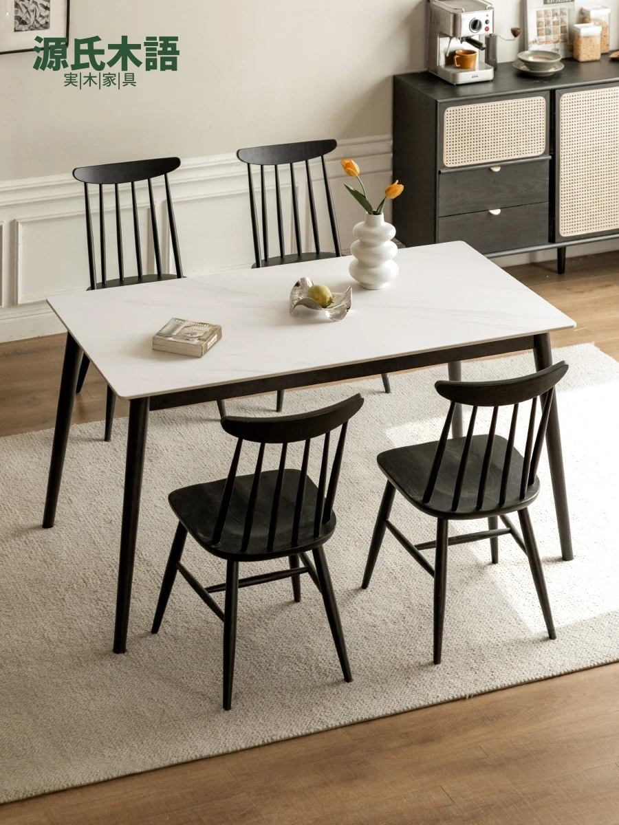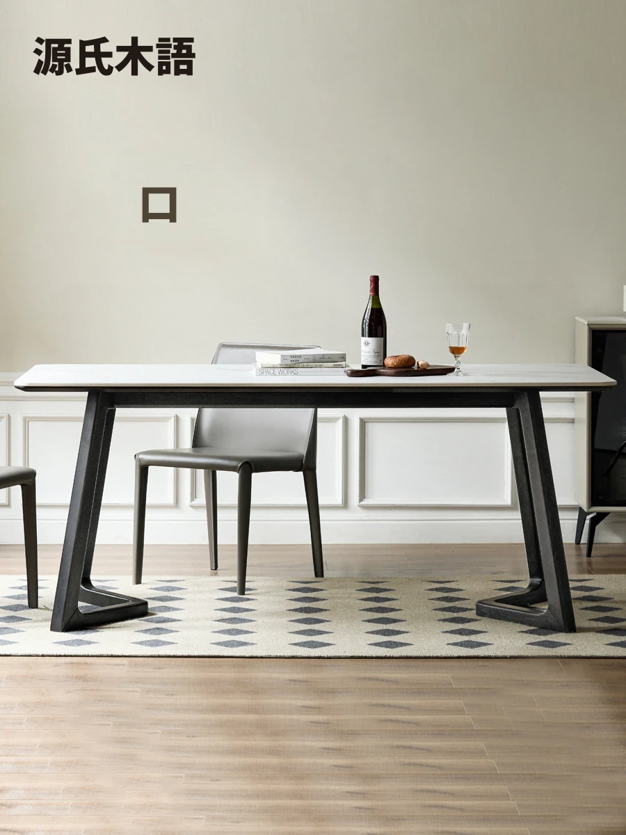 源氏木语 シンプルモダンな無垢材・ストーン調ダイニングテーブル 小スペースに最適なイタリアンラグジュアリー ブラック長方形テーブル