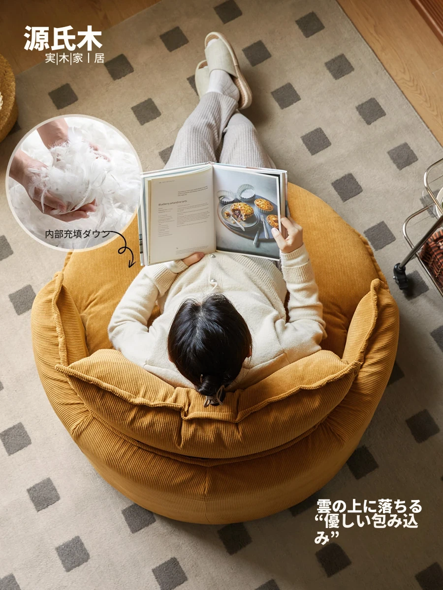 源氏木語のモダンシンプルな布製サロンソファー椅子 - 回転可能な円形デザインで、リビングやバルコニーにぴったりのリラックスチェア!スタイリッシュな空間を演出しましょう。