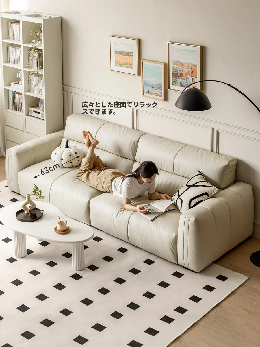 源氏木语本革イタリアンミニマリズムの上質なダウンソファ | リビング用のシックな黒色テイスト、快適さとスタイルを両立!
